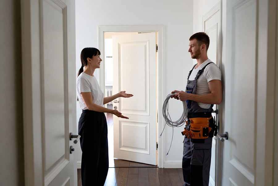 Но бесплатное подключение не стоит воспринимать как универсальное правило. Оно обычно относится к базовому сценарию: мастер заводит линию по стандартной схеме, без сложной прокладки, без дополнительной длины кабеля, без нетипичных работ внутри квартиры и без нестандартных пожеланий по трассе. Как только появляется дополнительная сложность, итоговая стоимость может вырасти.